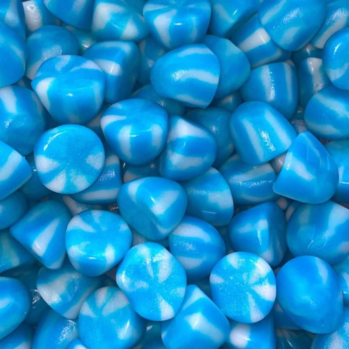 Le Bisou Twist Bleu de chez Dulceplus est un bonbon qui a le goût de la framboise et a une texture moelleuse.