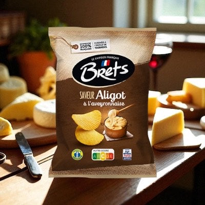 Tu veux des chips au vrai goût du terroir ? Les chips Bret’s saveur Aligot Aveyronnais combinent le croustillant des pommes de terre françaises avec l’onctuosité fromagère typique de l’aligot : du fromage, de la crème, une touche d’ail, le tout bien balancé.