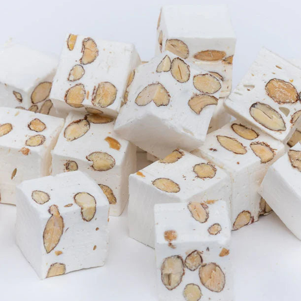 La fameuse confiserie en forme de gros cube de nougat aux amandes.