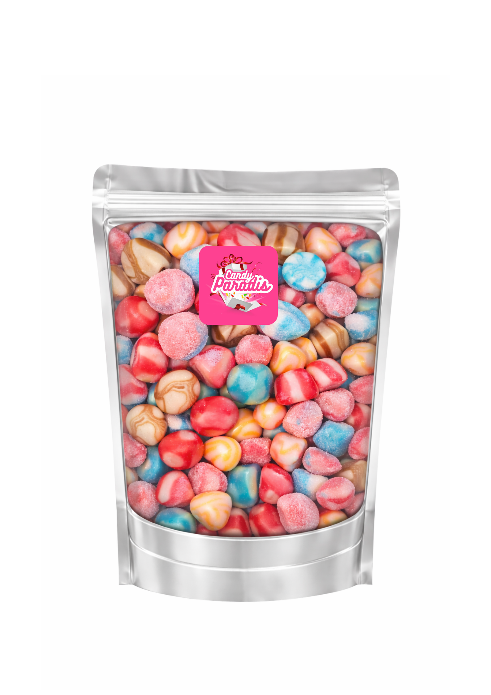 Mix 600g de caprices : fraise lisse et sucré, framboise lisse et sucré, cola lisse, pêche lisse, tutti sucré