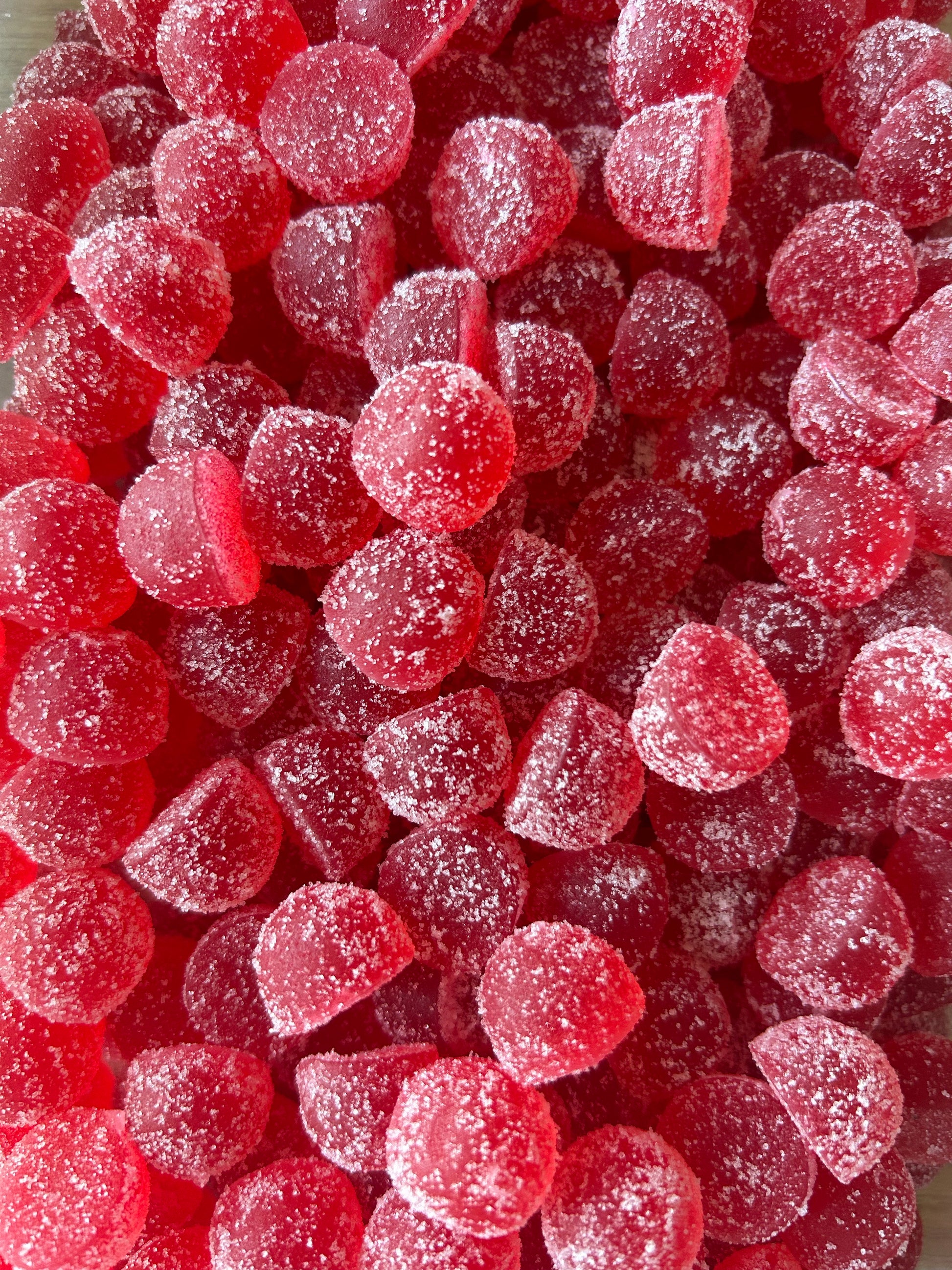 - Ingrédients : Maltitols, eau, gélatine, acide citrique, pectine, arôme de fraise, colorant : rouge carmin et agent d'enrobage : cire de carnauba et maltitol.