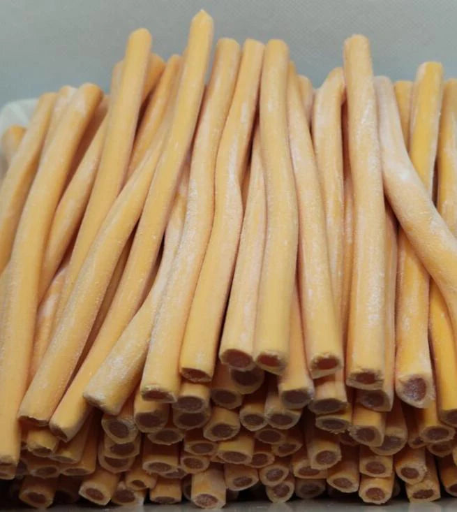 Ingrédients : Sucre, sirop de glucose et de fructose, farine de blé (gluten), amidon, gélatine, graisse végétale (palme, noix de coco), huile végétale (palme, noix de coco), acidifiants (E270, E296, E330), arômes, régulateurs d'acidité (E325, E331), sel, émulsifiant (E471), humectant (E422), colorants : E,100, E120, E160c.