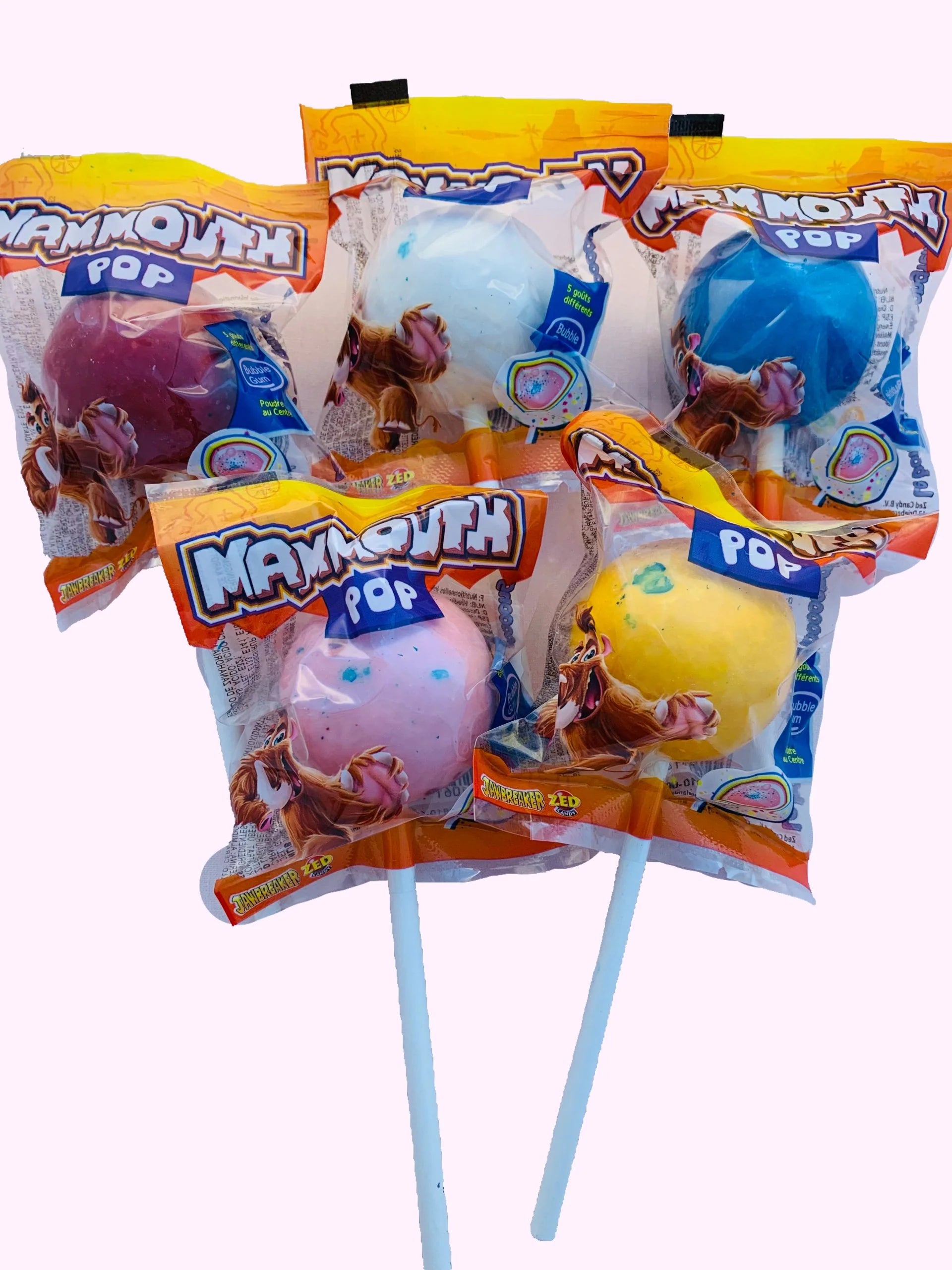 La fameuse Boule de Mammouth en version sucette géante qui change de couleur et de goût avec un chewing-gum au centre