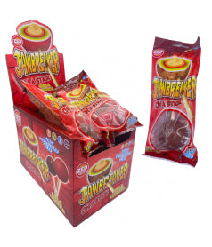 Boule de Mammouth Cola en version sucette géante qui change de couleur et tâche langue avec un chewing-gum au centre